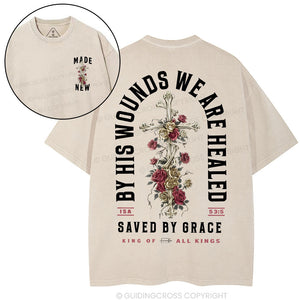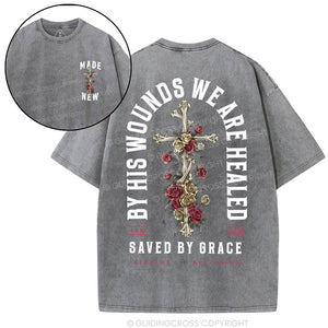 By His Wounds We Are Healed Christian Washed T-Shirt