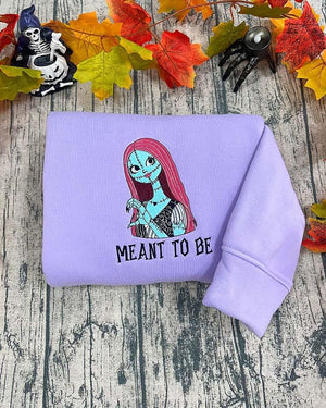 Custom Halloween Couple Cartoon Skeleton Jack and Sally Embroidered Sweatshirt-We Are Simply Meant To Be, Birthday Gift