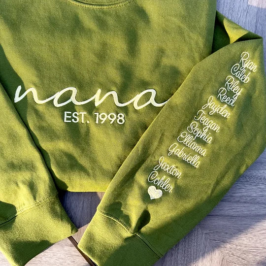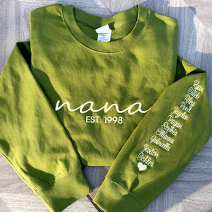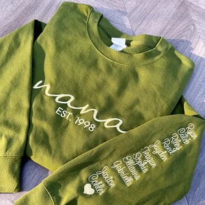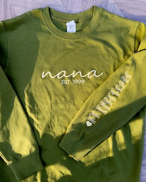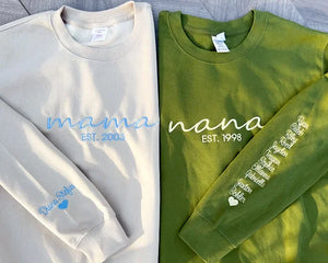 Custom Embroidered Mama/Nana Sweatshirt with Kids Names on Sleeve