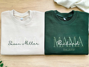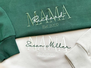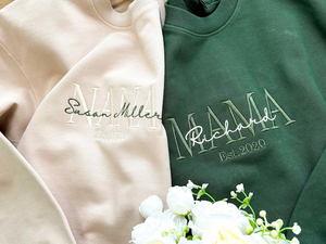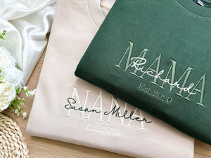 Custom Embroidered Mama Sweatshirt with Kid Name, Mama Sweatshirt, Pregnancy Announcement, Mother’s Day Gift