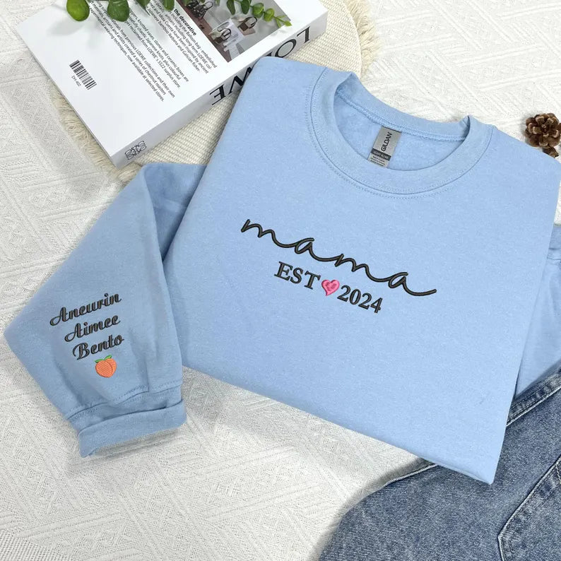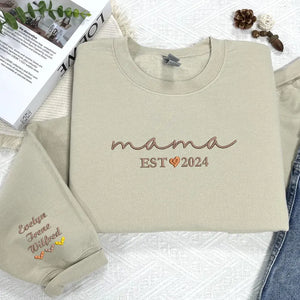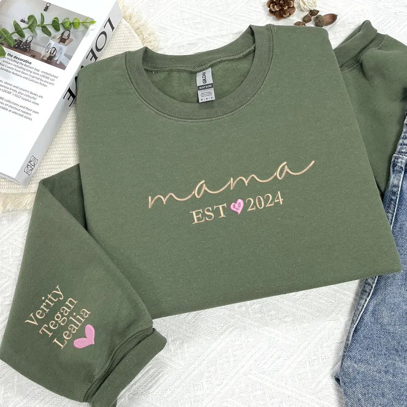 Custom Embroidered Mama Sweatshirt with Kid Names - Personalized Mom Hoodie With Names - New Mama Outfit - Pregnancy Announcement Clothing