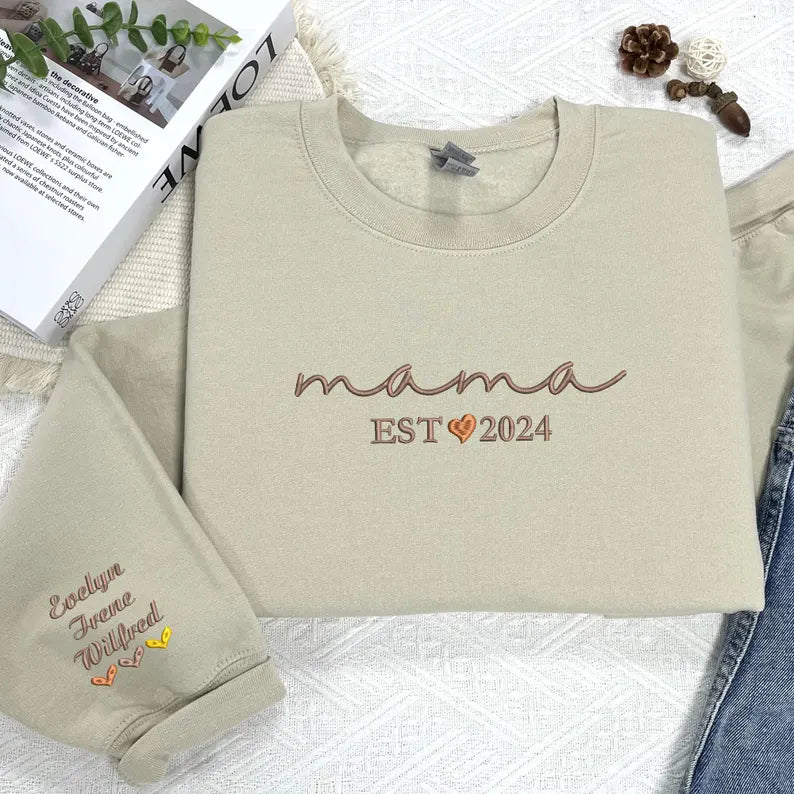 Every mom deserves to feel loved and appreciated. Our Custom Mom Sweatshirt and Hoodie is the perfect way to honor the incredible woman in your life. Featuring a heartfelt "Mama" design on the chest, customizable sleeves for names, and the option to add a special year, this sweatshirt is a timeless keepsake she’ll treasure forever. Whether it’s for Mother’s Day, her birthday, or just because, this personalized gift is a meaningful way to show your love and gratitude.