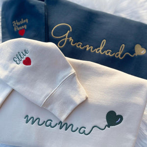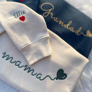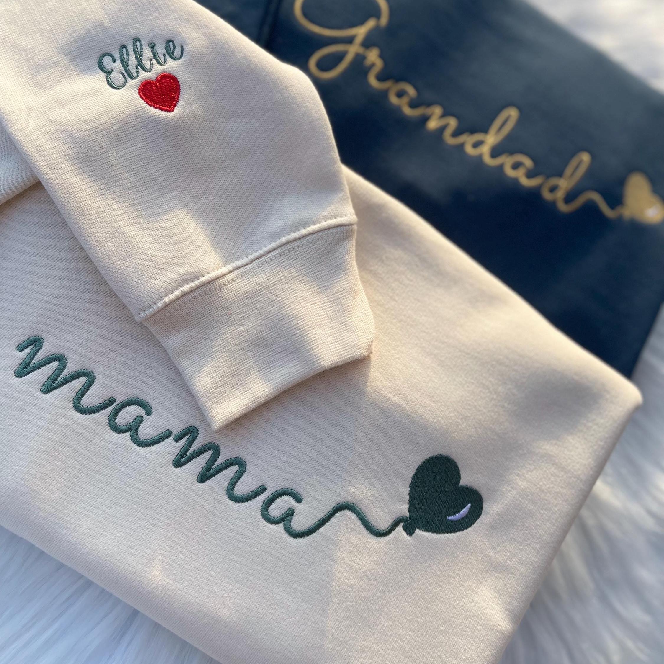 NoneCustom Embroidered Mama Sweatshirt with Kids Name on Sleeve, Personalized Mom Sweatshirt, Valentines Day Mothers Day Gift for New MomThis custom embroidered Mama sweatshirt is the perfect way to keep your little ones close to your heart! Featuring kids' names embroidered on the sleeve, this personalized Mom sweatshirt is a sentimental yet stylish piece for everyday wear. Designed with a minimalist and cozy aesthetic, this Momma sweater makes a thoughtful Mothers Day gift, birthday present, or baby shower surprise. Give Mom a unique keepsake she'll cherish forever!Key Features:Crafted for comfort, our unisex hoodies boast a blend of 50% polyester for ultimate a softness and durability , along with a double-lined hood and double-needle stitchingWhy People Love Our Product:✅Its not easy to satisfy everyone when it comes to apparel, especially when choosing one as a gift - unless you opt for our personalized apparel. A personalized hoodie is a perfect gift for all occasions and makes your loved one feel even more special.✅Clothingis a minimalist look but a big statement. Embroidered makes it a special and unique look.Imagine seeing the joy and love on someone's face when you gift this personalized hoodie to your special someone.Sizing and ColoringPlease make sure you select the right color and size for you so you can receive your order without delay.All of our hoodies are UNISEX, which means the sizing run like men's but sticking to your normal size is recommendedWe have various beautiful and vibrant colors available for this design!Care InstructionsOur clothing items are SUPER easy to take care of. Simply turn the clothing inside out and machine wash cold with mild detergent. Do not dry clean, bleach, or iron directly.Perfect unique gifts Perfect as a simple gesture, suits for all age group. It is a perfect gift for yourself and your loved ones.OUR GUARANTEETracking number for every orderSafe payments Visa, Paypal, Mastercard, and Apple Pay24/7 assistance service@Loversdovey.comNo hidden fees!