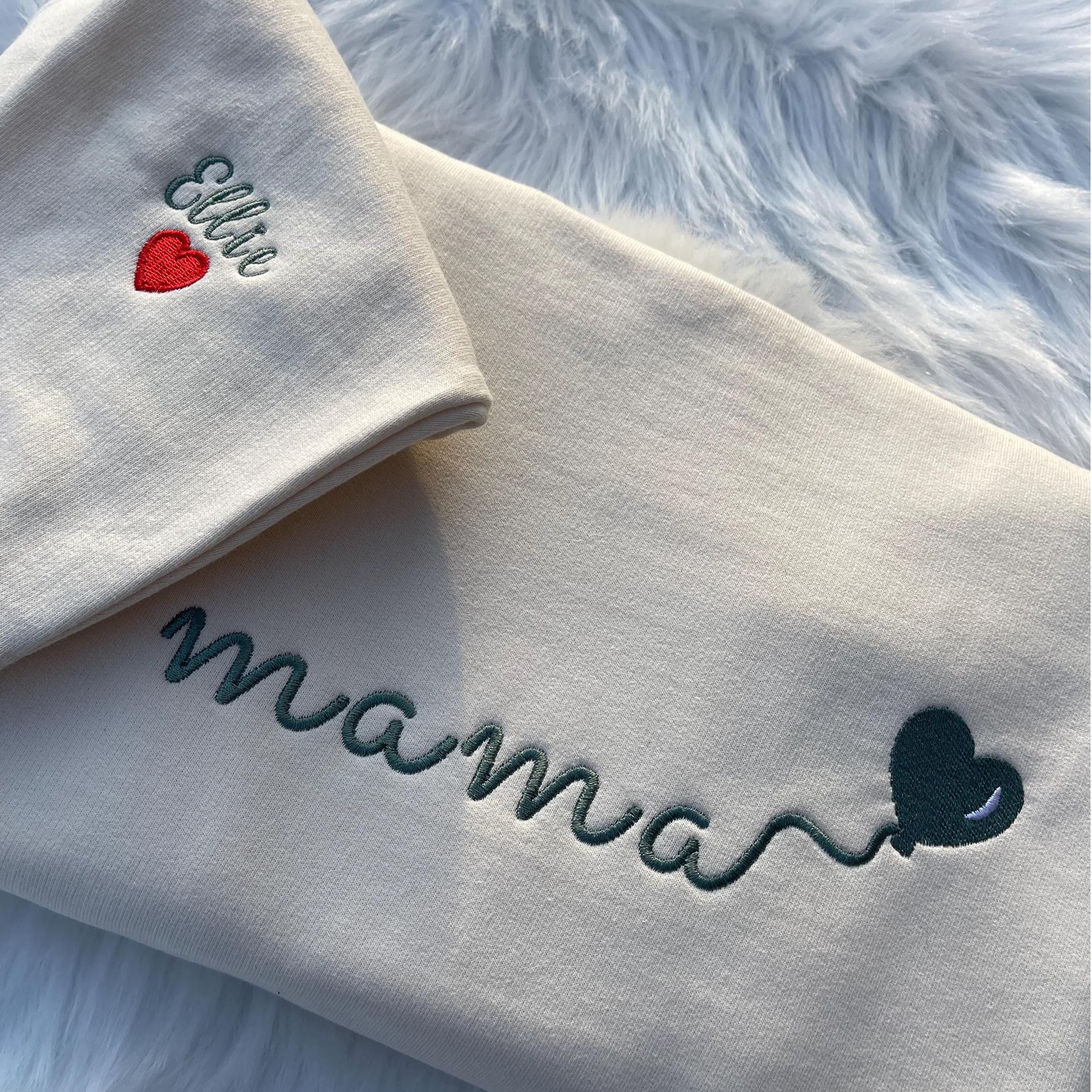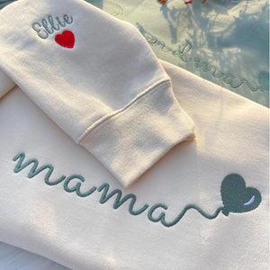 Custom Embroidered Mama Sweatshirt with Kids Name on Sleeve
