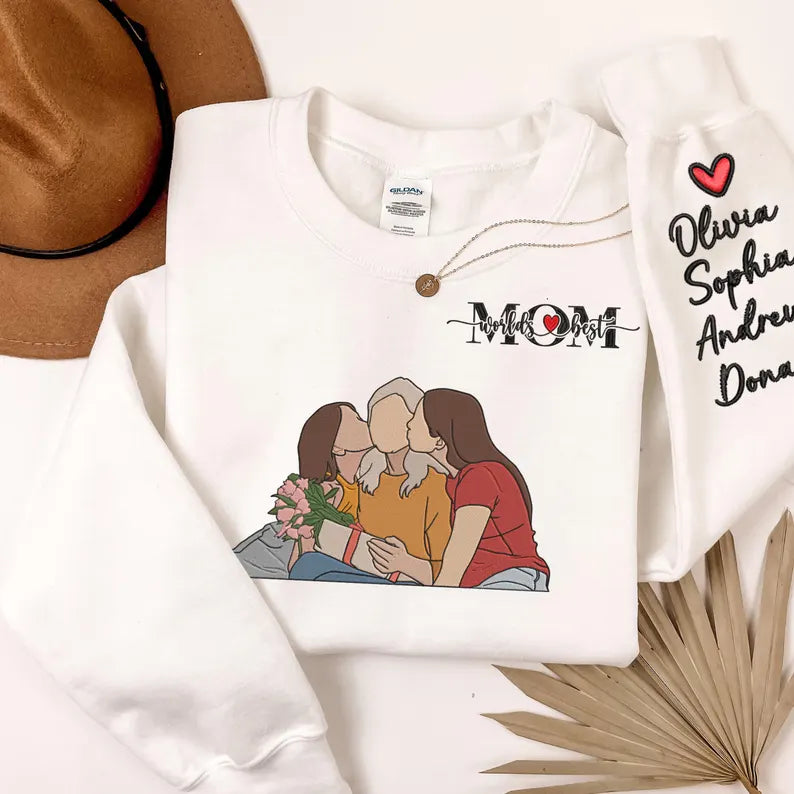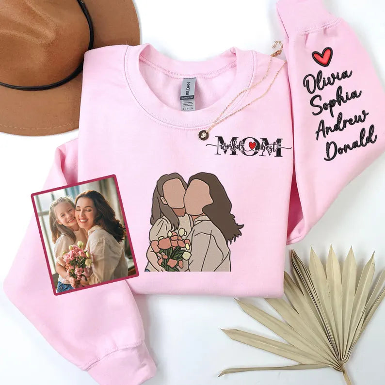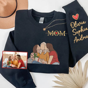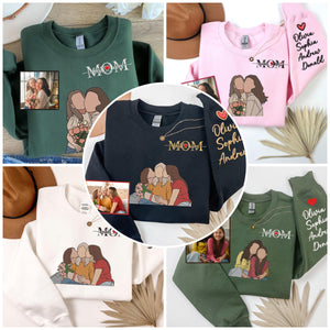 Custom Embroidered Mom Sweatshirt with Personalized Photo & Kids Names, Unique Mother’s Day Gift, Best Mom Ever Hoodie