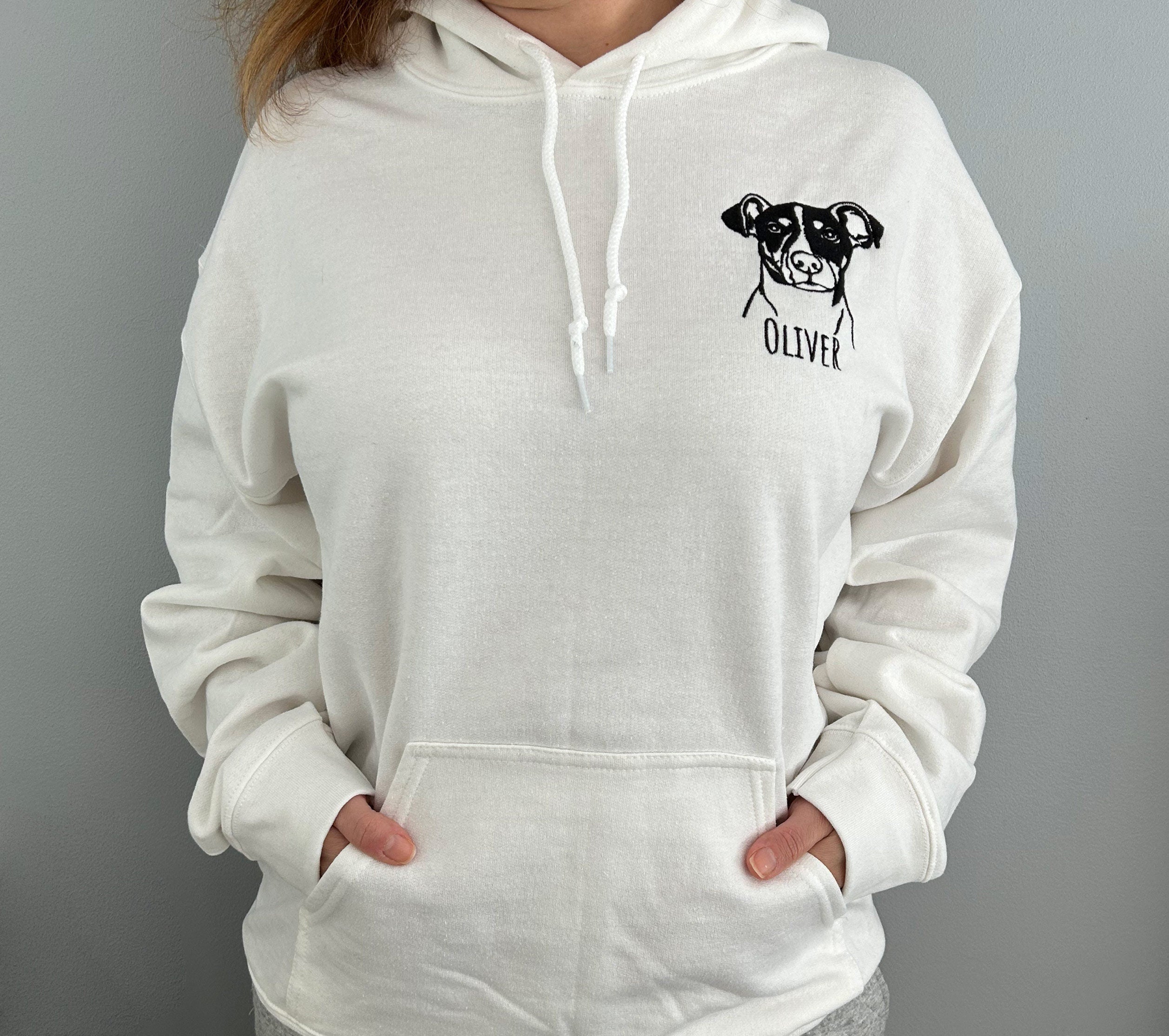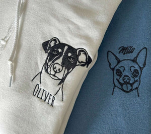 Custom Embroidered Pet Portrait Hoodie With Photo And Name | Gift For Pet Lover