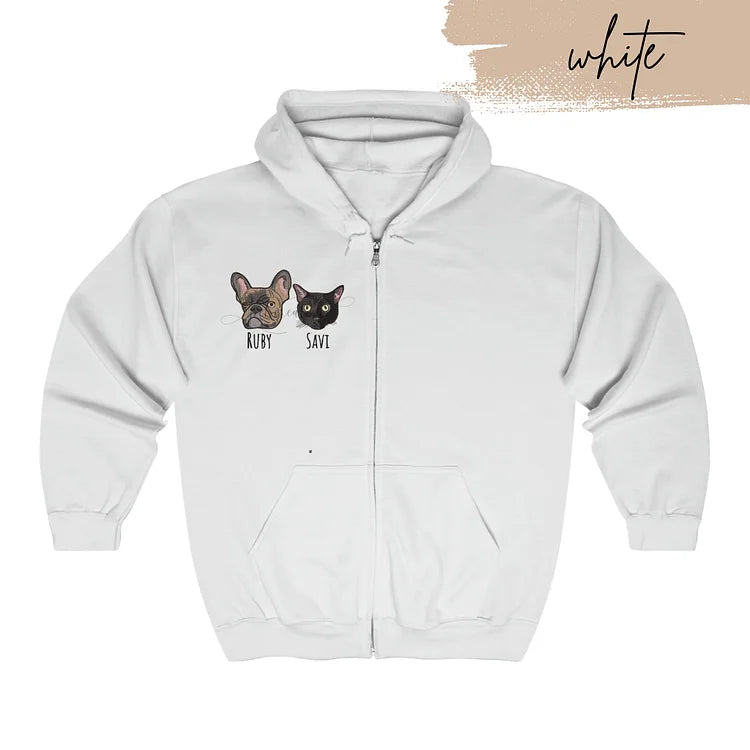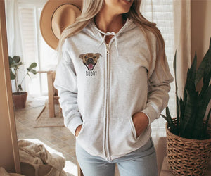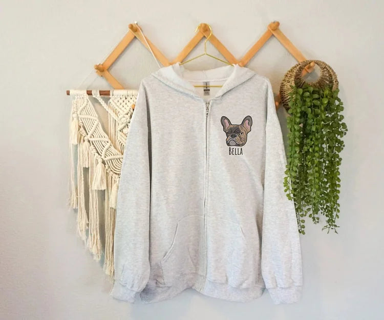 Custom Embroidered Pet Portrait Hoodie Zip Up Hoodie
