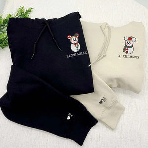 Custom Embroidered Roman Numeral Date Hoodies For Couples Snowman Christmas Couples Embroidered Hoodie
