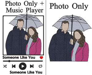 3️⃣ Full-Color Photo + Music Player Embroidery: A creative combination of a photo and music player graphic.