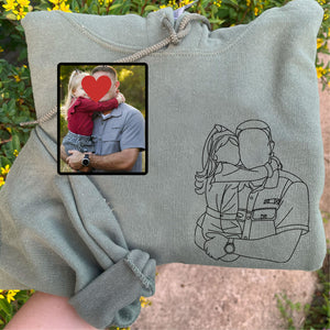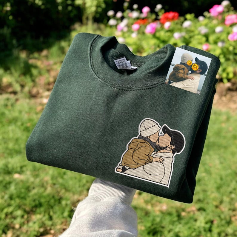 This Father's Day, give your dad a truly personalized gift with our custom embroidered sweatshirt. Featuring a detailed portrait photo of father and son, each piece is crafted with care to capture the special bond you share. The color frame adds a pop of vibrant detail, making this sweatshirt a unique and memorable gift for dad.