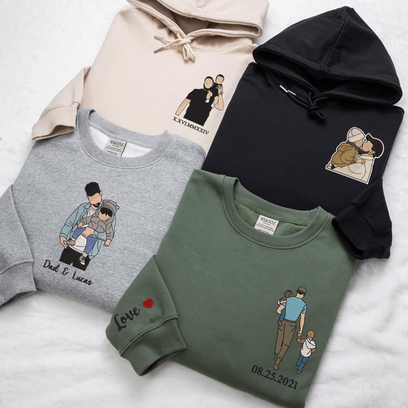 Celebrate the special bond between father and child with our Custom Embroidered Sweatshirt Portrait! With its customizable design and heartfelt message, this Custom Embroidered Sweatshirt Portrait is more than just a gift—it’s a celebration of the love and memories you share with Dad. Make his day unforgettable!