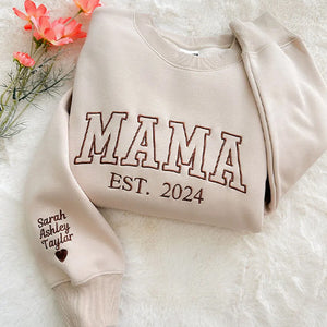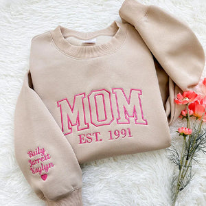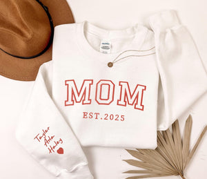 Custom Embroidered Sweatshirt With Your Child's Name And Heart On The Sleeve As A Mother’s/Father's Day Gift