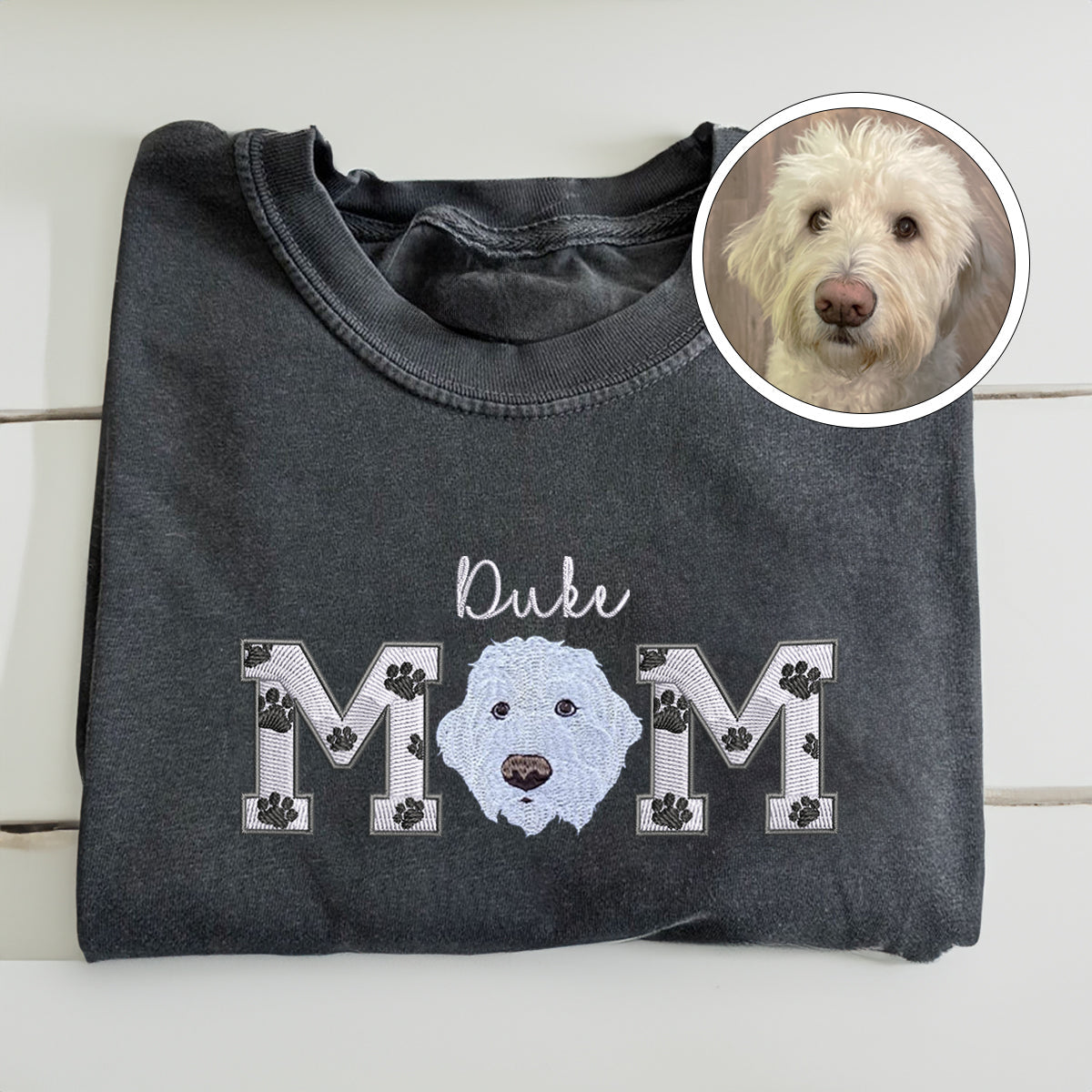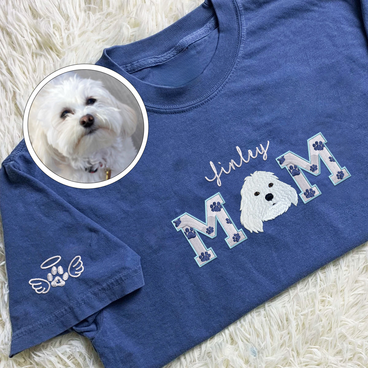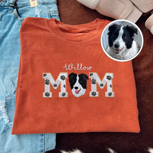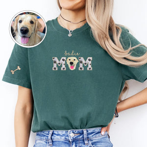 Custom Full-Color Dog Mom With Name Embroidered T-Shirt | Gift For Pet Lovers
