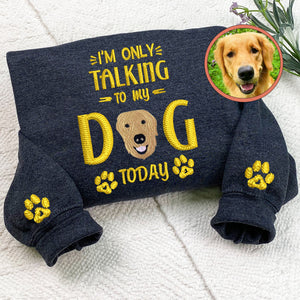 Custom Full-Color I'm Only Talking To My Dog Today Embroidered Sweatshirt | Gift For Pet Lovers