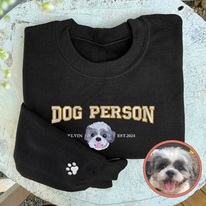 Custom Full-Color Varsity Dog Person Embroidered Sweatshirt | Gift For Pet Lovers