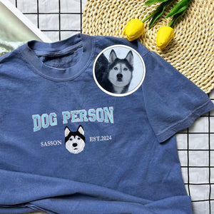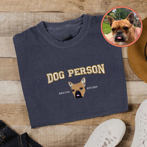 Custom Full-Color Varsity Dog Person Embroidered T-Shirt | Gift For Pet Lovers