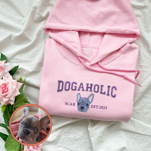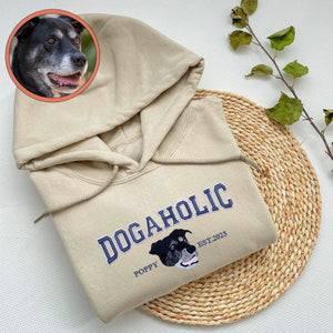 Custom Full-Color Varsity Dogaholic Embroidered Hoodie | Gift For Pet Lovers