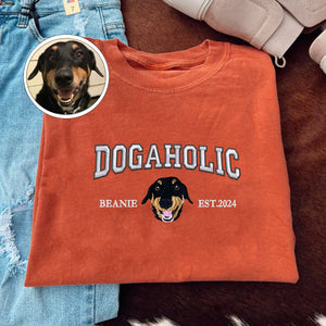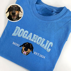 Custom Full-Color Varsity Dogaholic Embroidered T-Shirt | Gift For Pet Lovers