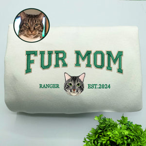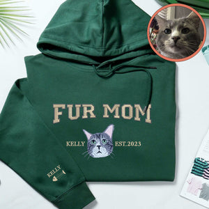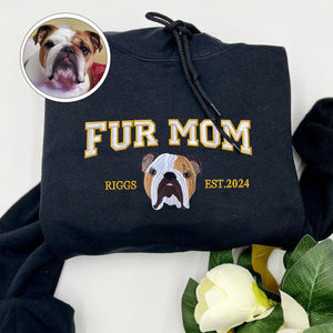 Custom Full-Color Varsity Fur Mom Embroidered Hoodie | Gift For Pet Lovers