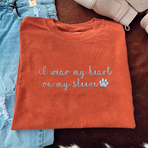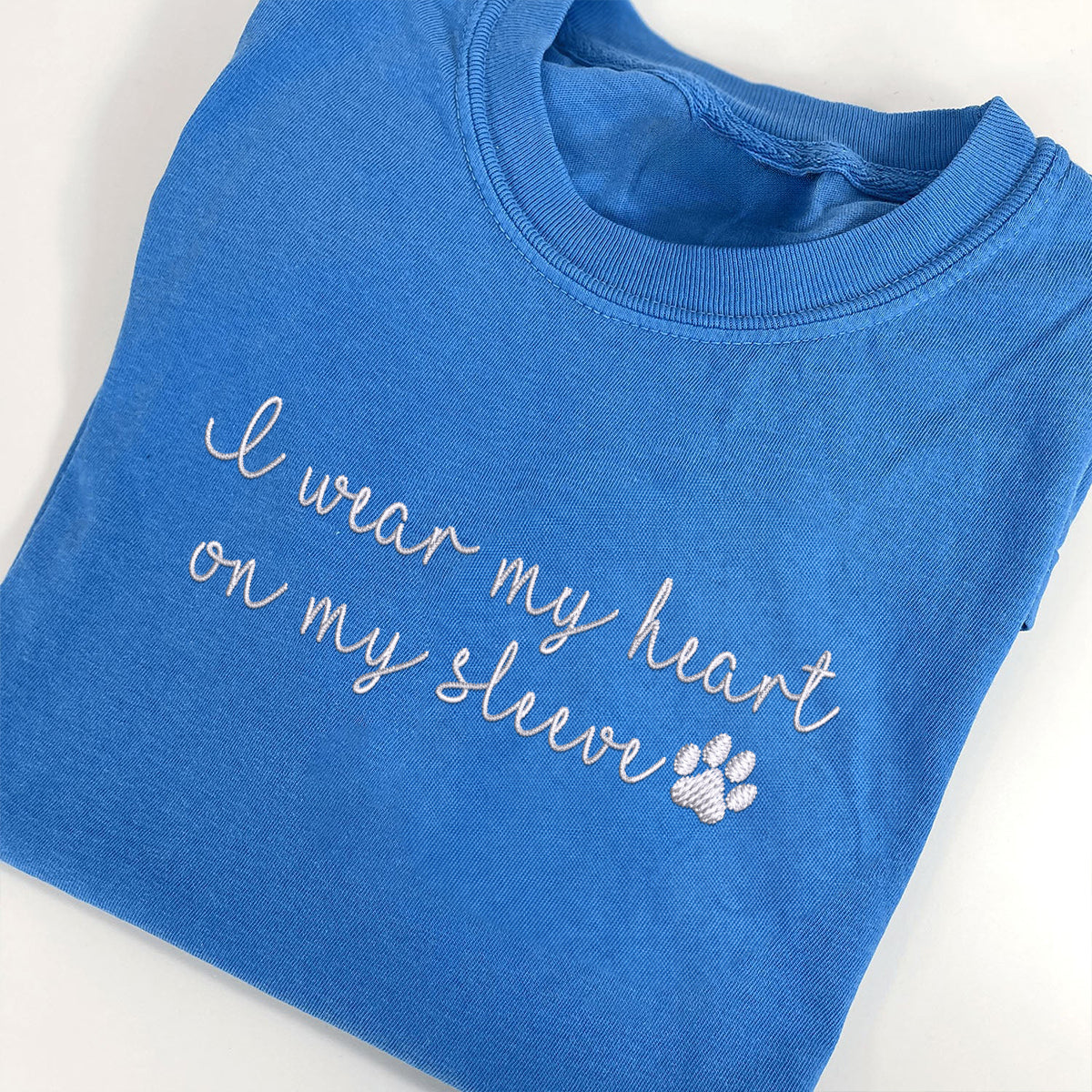 Custom I Wear My Heart On My Sleeve Embroidered T-Shirt | Gift For Pet Lovers