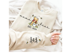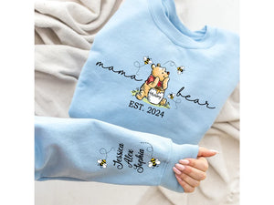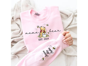 Custom Mama Bear Sweatshirt,Mama Est with Kids Name on Sleeve Sweatshirt, Personalized Mom Sweatshirt, Nana, Grandma, Gigi,Mothers Day Shirt