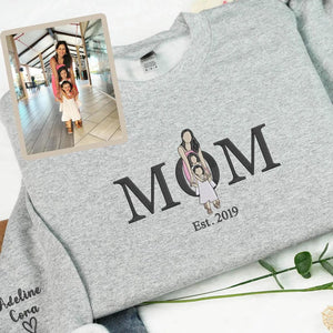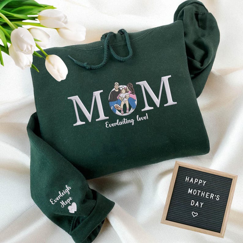 Custom Mama Embroidered Sweatshirt, Personalized Mom Portrait from Photo Sweater