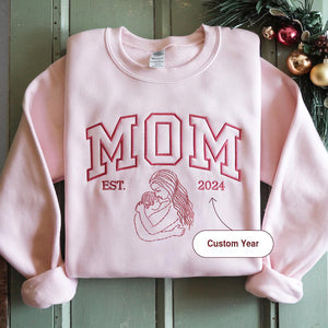 Custom MOM Embroidered Sweatshirt – Embroidered Crewneck, Est. Year, New Mom Gift, Personalized Mother's Day Sweater