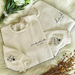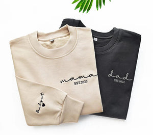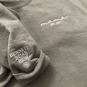 Custom Mom Sweatshirt and Hoodie, Embroidered Name on Sleeve, Best Gift for Mom