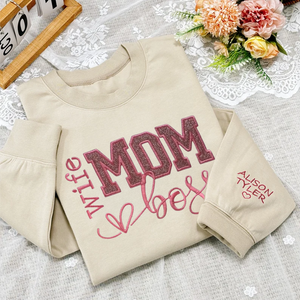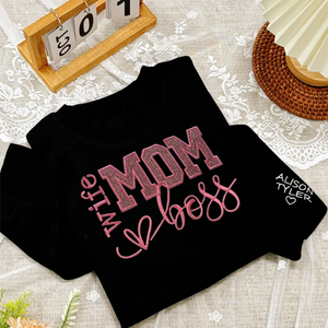 Celebrate the incredible woman in your life with the Custom Mom, Wife & Boss Glitter Applique Embroidered Sweatshirt! This versatile and stylish sweatshirt is designed to honor the many roles she plays—whether she’s a loving mom, a devoted wife, or a fearless boss. Perfect for birthdays, Mother’s Day, anniversaries, or just because, this sweatshirt is a heartfelt way to show your appreciation for all she does.