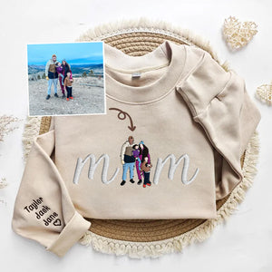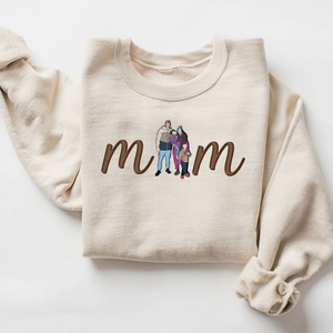 🌟 Custom Mum in Family Portrait Photo Full Embroidered Sweatshirt 🌟