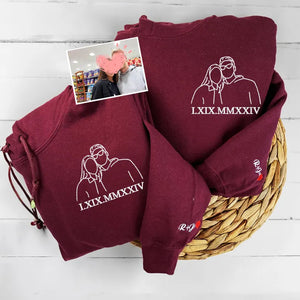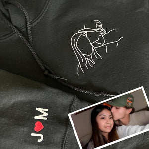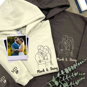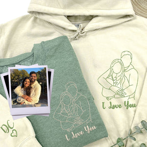 Custom Outline Embroidered Portrait from Photo-Matching Couple Hoodie