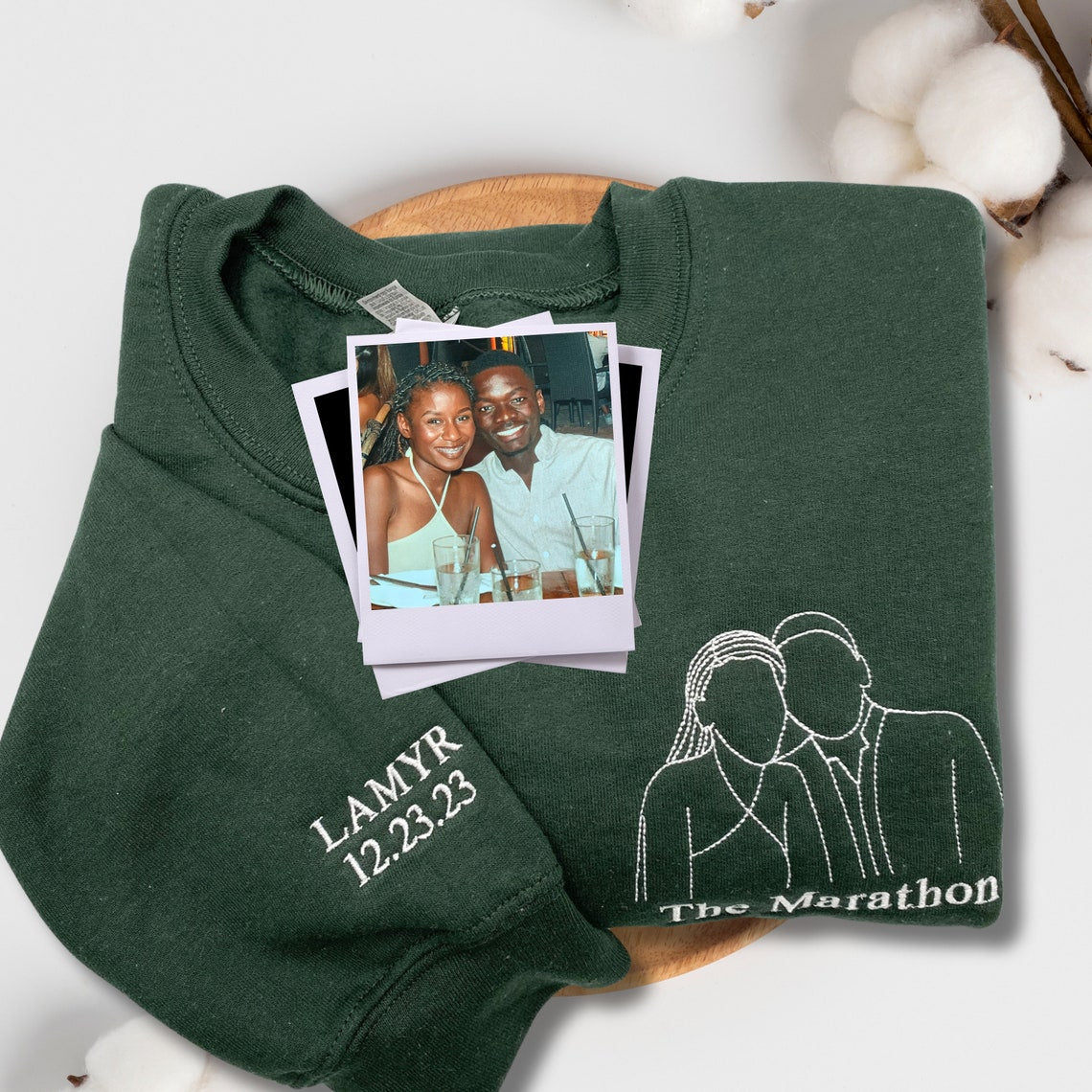 Get your Custom Embroidered Portrait from Photo Sweatshirt! Perfect for couples, this Couple Portrait Shirt makes an ideal Wedding Portrait or Matching Couple Hoodies. A unique Anniversary Gift they'll treasure forever.