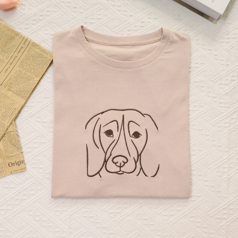 Custom Embroidered Pet Outline Sand T-shirt | Gift For Pet Lover