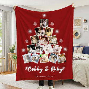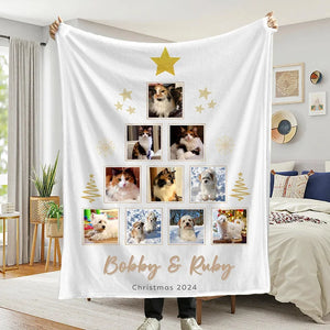 Custom Photo Christmas Tree Collage, Personalized Photo Blanket, Christmas Gift