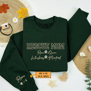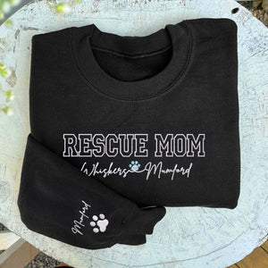 Custom Rescue Mom With Names Embroidered Sweatshirt | Gift For Pet Lovers
