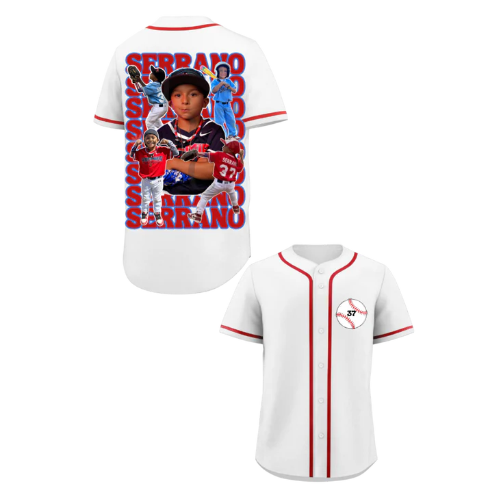 Whether you're a baseball mom, a die-hard fan, or a player who wants a unique keepsake, this Custom Sports Jersey lets you design a jersey that’s 100% YOU! Add your favorite team logo, personalize it with your name & number, and even showcase 6 special photos on the back—making it the ultimate sentimental or game-day jersey!