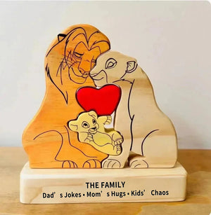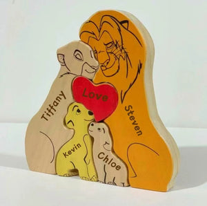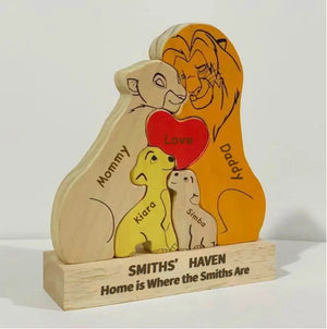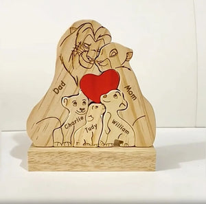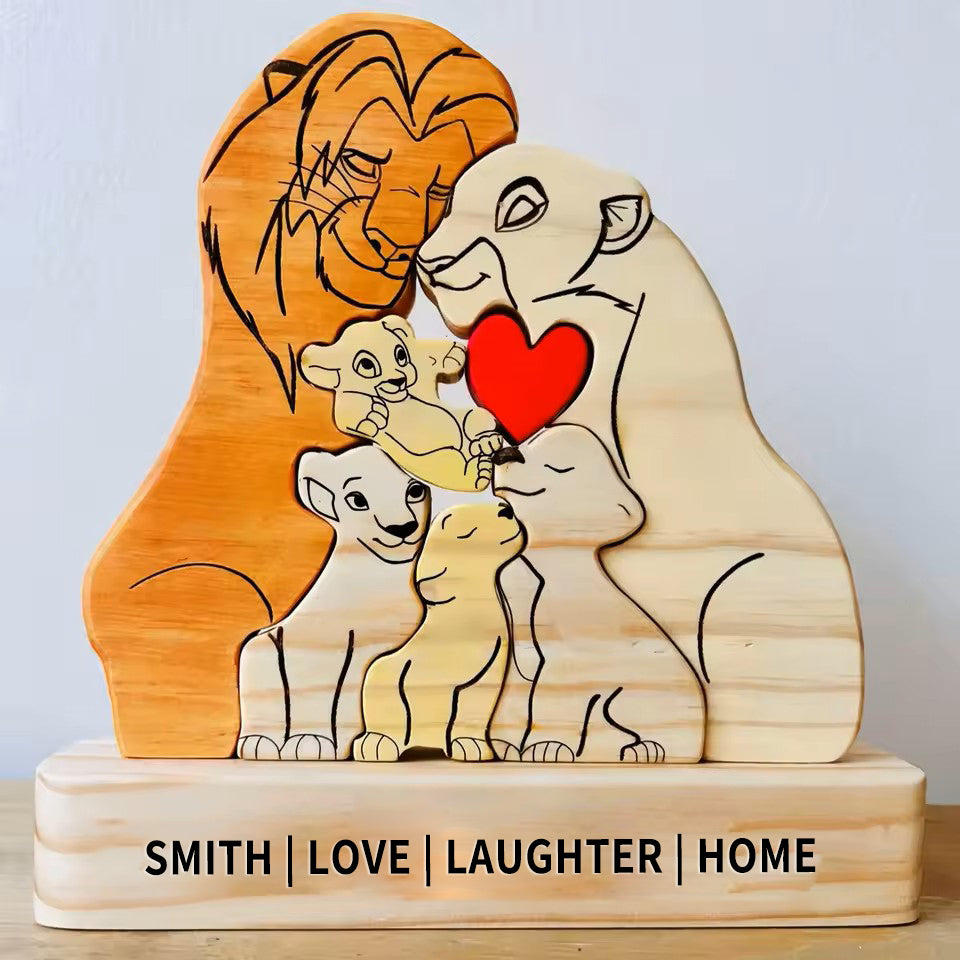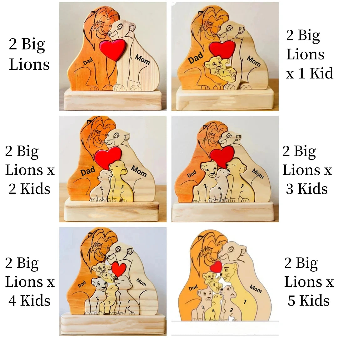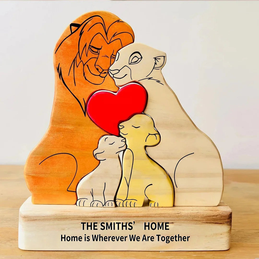 Custom Wooden Lion Family Puzzle – Personalized Home Decor & Gift