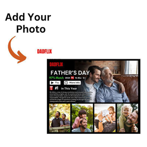 Turn your favorite memories into a blockbuster tribute with this personalized Dadflix movie photo collage. A fun and heartfelt gift that celebrates Dad as the true star of the family.
