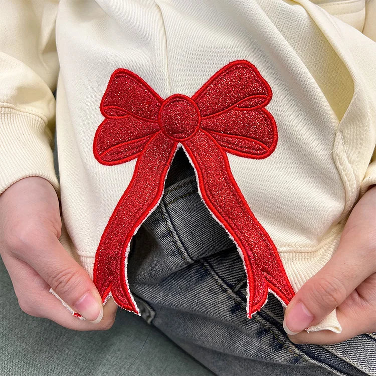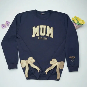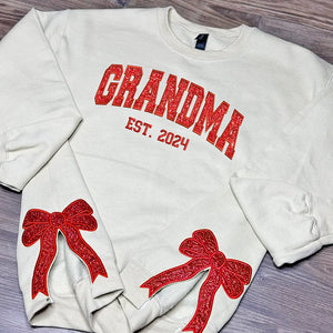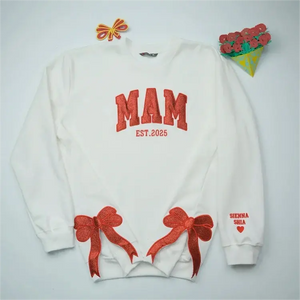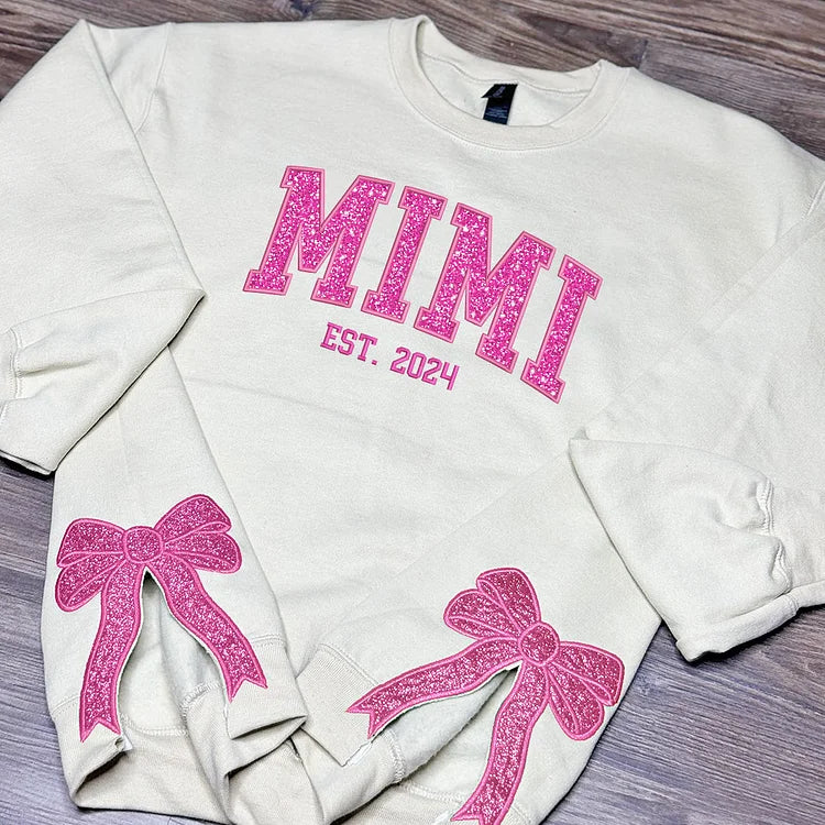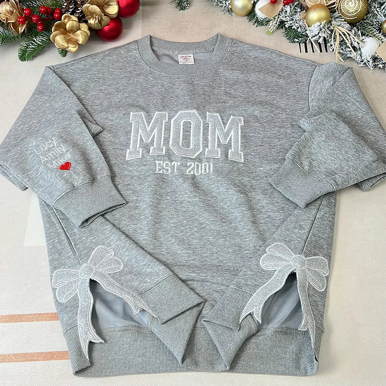 Customized Glitter Bow Embroidered Sweatshirt- Gift For Mom