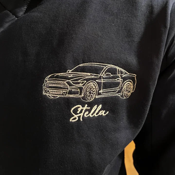 Is your dad, husband, or grandad a true car enthusiast? Surprise him this Father's Day with a one-of-a-kind embroidered hoodie featuring his beloved car! Whether it’s his classic ride, dream sports car, or family SUV, we’ll transform his favorite photo into a premium embroidered masterpiece.