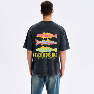 Even Jesus Had A Fish Story Christian Washed T-Shirt