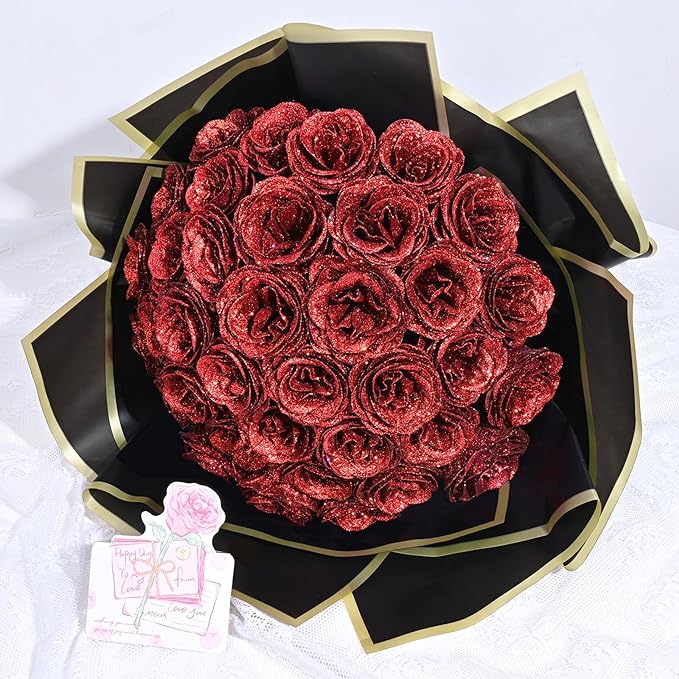 💖 Celebrate Love, Sparkle, and Joy: Make a statement with our Glitter Rose Flower Bouquet, a symbol of everlasting love, sparkle, and joy.