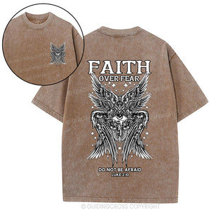 Faith Over Fear Seraphim Angel Christian Washed T-Shirt
