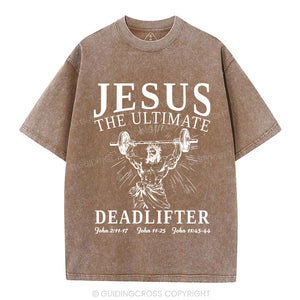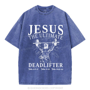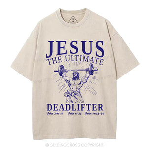 Jesus The Ultimate Deadlifter Christian Washed T-Shirt