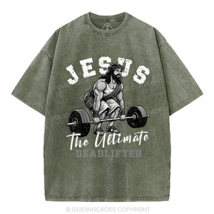 Jesus The Ultimate Deadlifter Christian Washed T-Shirt