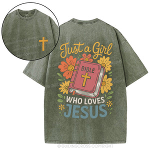 Just A Girl Who Loves Jesus Christian Washed T-Shirt