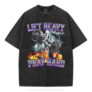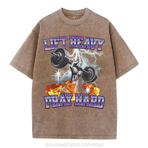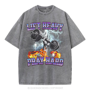 Lift Heavy Pray Hard Chirstian Washed T-Shirt