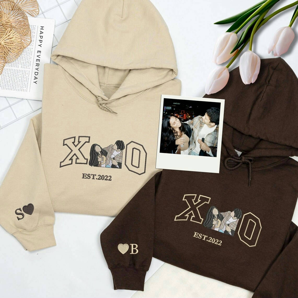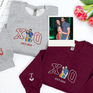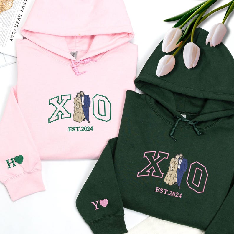 Loversdovey Customized Couples Hoodies | Embroidered Couple Portrait Matching Sweatshirt | Husband Wife Hoodies