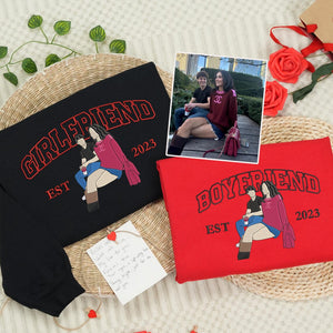 Loversdovey Personalized Embroidered Photo Couple Boyfriend and Girlfriend Matching Sweatshirts