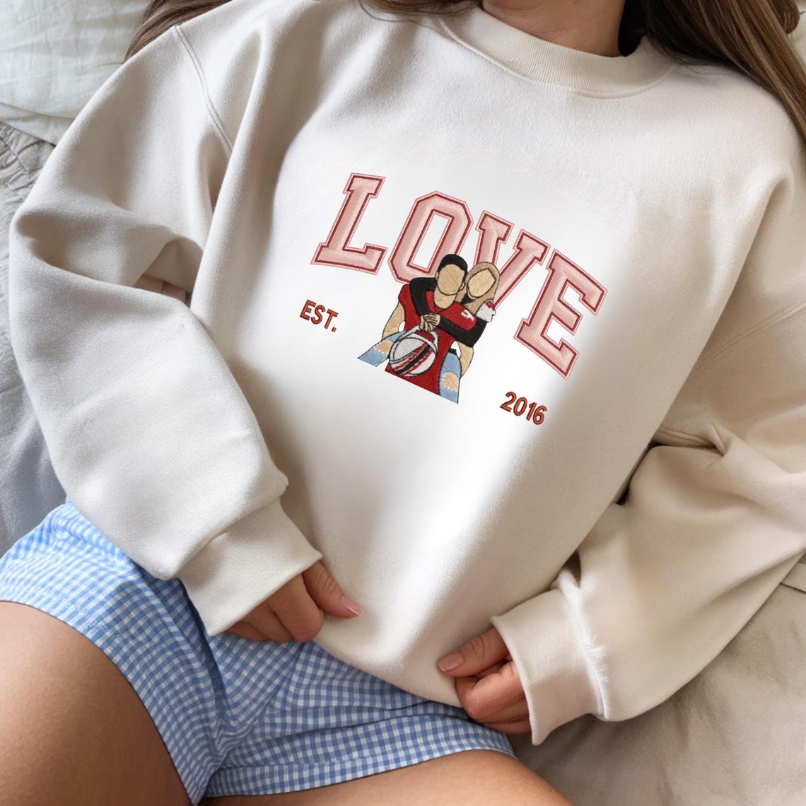 Loversdovey Personalized Embroidered Photo Couple LOVE Est Year Valentines Matching Couple Gift